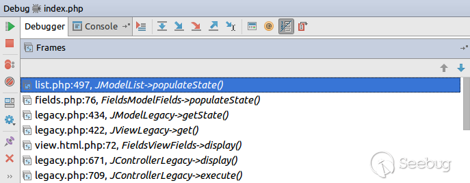跟进这个设置过程,程序会走到`libraries/legacy/model/list.php`中的`populateState`函数中,具体的调用栈如下: